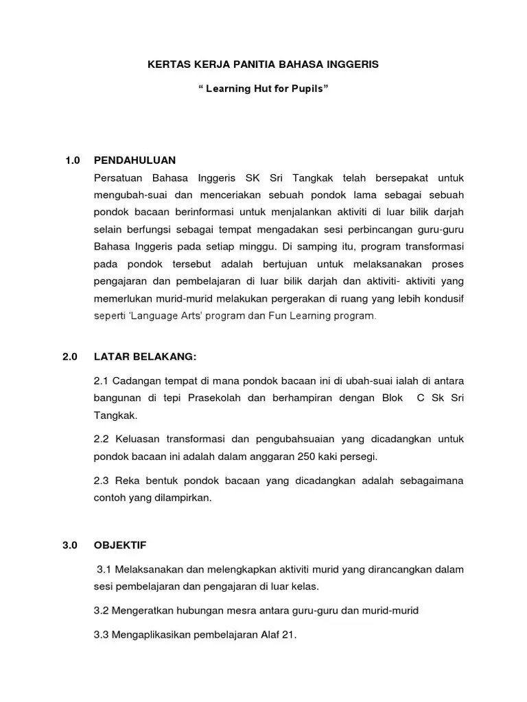 Kertas Kerja Penubuhan Persatuan from www.coursehero.com Tujuan kertas kerja ini dikemukan untuk mendapatkan pertimbangan dan kelulusan pihak pentadbir sk jus terhadap cadangan penubuhan persatuan bahasa arab sk jus oleh jawatankuasa penaja. Murid merupakan modal insan yang sangat berharga untuk menentukan arah pembangunan negara pada masa akan datang. Ali duduk di kelas vii sekolah menengah pertama di daerahnya. Apa saja fungsi kertas kerja? Kertas kerjacadangan penubuhan fakulti sekolah institut untuk. Cerpen adalah salah satu jenis karya sastra yang berbentuk prosa. Kertas kerja persatuan bahasa tamil. Yang berketerampilan dalam bahasa arab, berdisiplin dan memiliki sahsiah yang terpuji serta mampu berkomunikasi menggunakan bahasa arab.