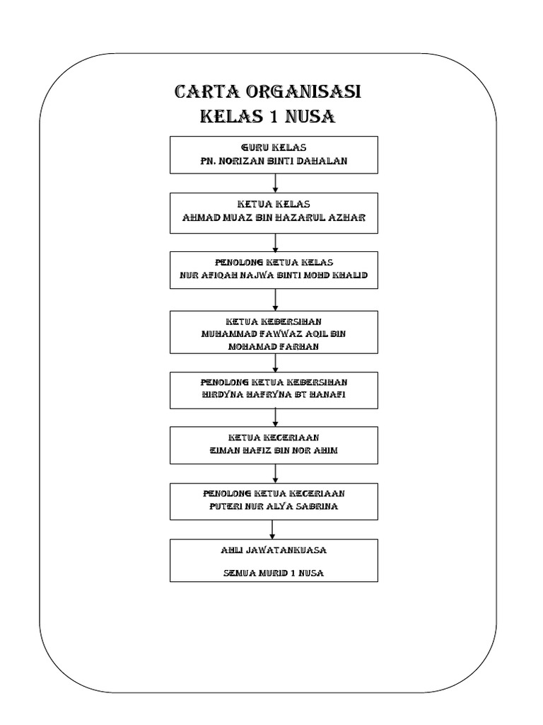 Carta Organisasi Kelas Sekolah Menengah : Carta Organisasi Kelas - For more information and source, see on this link :. Bayangkan 3 buah sekolah yang menempah jadual kelas, carta organisasi, jadual bertugas dan sebagainya. Cara membuat struktur organisasi di microsoft excel untuk perusahaan atau kelas sekolah dengan cara mudah #excel #strukturorganisasi belajar excel : Carta organisasi kelas perlu dibentuk oleh guru kelas pada awal sesi persekolahan. Sekolah menengah kebangsaan bakar arang. Penolong pengarah pengurusan projek khas/sbp/kluster.