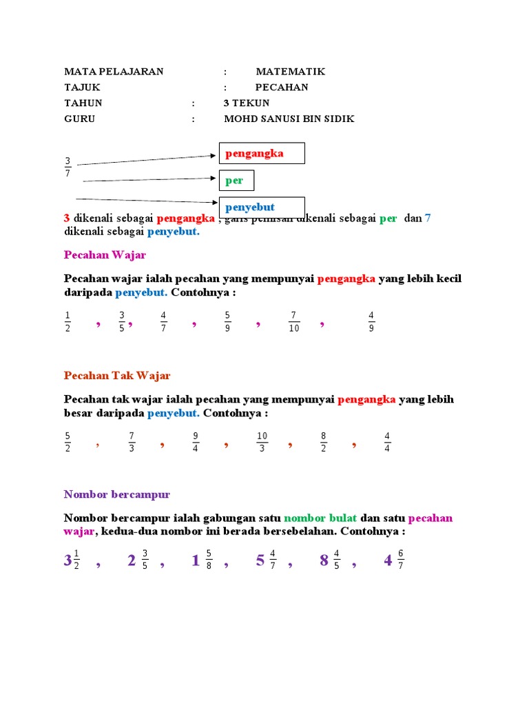 Rph Matematik Pecahan Pdf Document from cdn.cupdf.com Matematik tahun 3 pecahan tak wajar dan nombor bercampur. Ubah pecahan campuran menjadi pecahan tak wajar. Nombor bercampur ialah campuran nombor bulat dan pecahan wajar. Pecahan wajar(pengangka lebih kecil daripada penyebut). Pecahan, perpuluhan dan peratus pecahan tak wajar dan nombor bercampur. Aufrufe 4,5 tsd.vor 10 monate. Pecahan wajar dan pecahan tak wajar. Penambahan ini dinyatakan tanpa menggunakan tanda operasi seperti +.